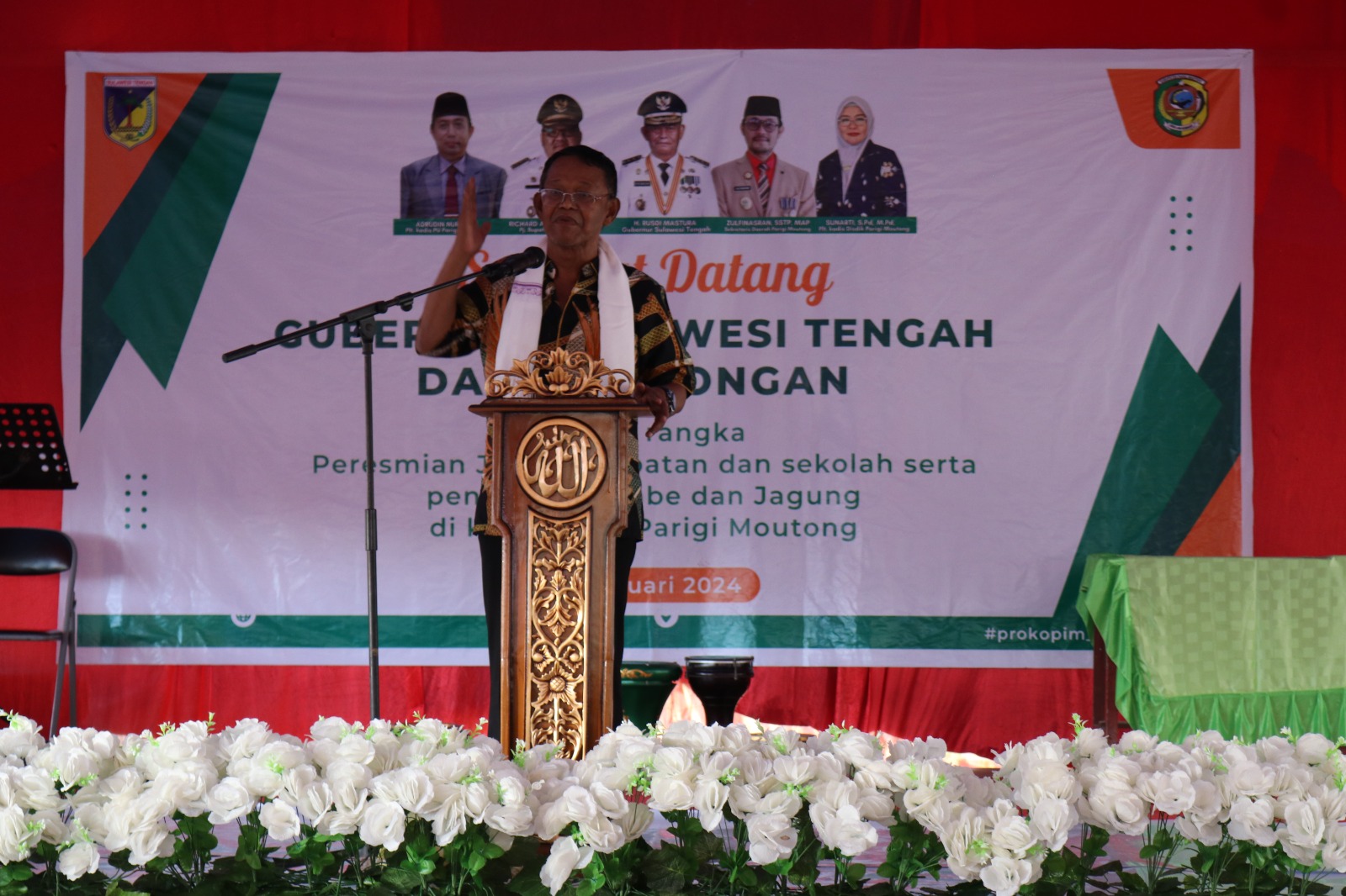 GUBERNUR Provinsi Sulawesi Tengah (Sulteng), Rusdy Mastura bersama rombongan melaksanakan Kunjungan Kerja (Kunker) ke Kabupaten Parigi Moutong, bertempat di Halaman Ponpes Alkhairaat Kecamatan Moutong, Minggu, 28 Januari 2024.