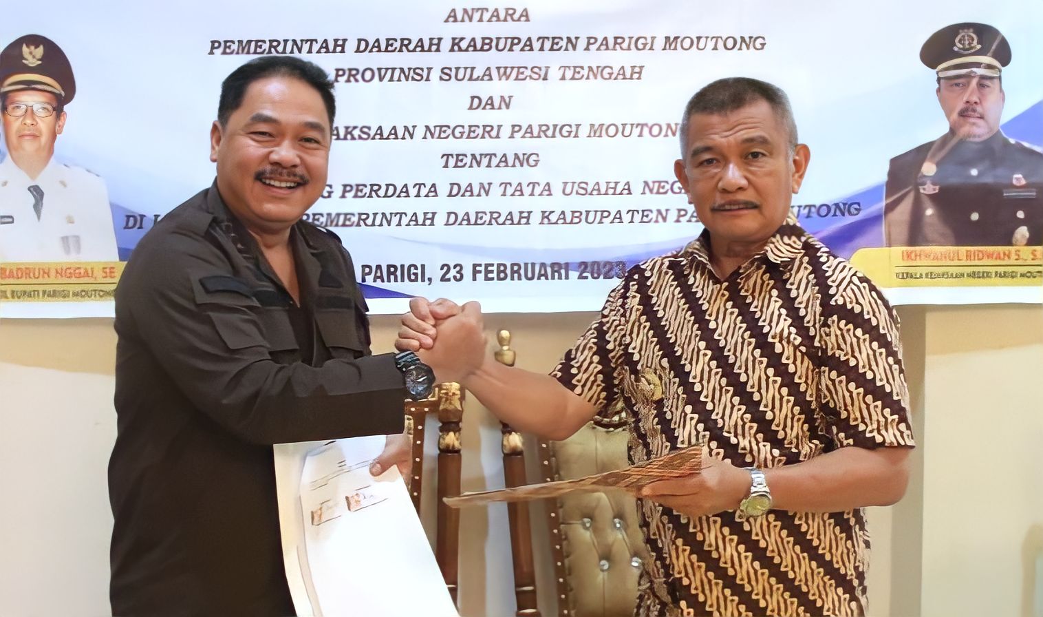 Penandatangan Memorandum of Understanding (MoU) tersebut dilakukan oleh Bupati Parigi Moutong, Samsurizal Tombolotutu dengan pihak kejaksaan Kajari Parigi Moutong, Ikhwanul Ridwan di rumah jabatan (Rujab) bupati, Kamis 23 Februari 2023.