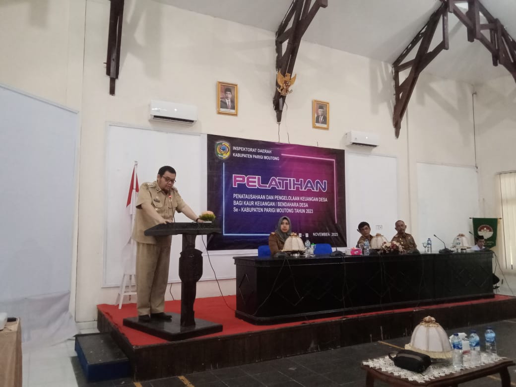PEMERINTAH Kabupaten Parigi Moutong, melalui Inspektorat Daerah melaksanakan Pelatihan Penatausahaan dan Pengelolaan Keuangan Desa yang diikuti oleh Kaur Keuangan/Bendahara Desa se-Kabupaten Parigi Moutong, di aula Bappelitbangda. Senin, 13 November 2023.
