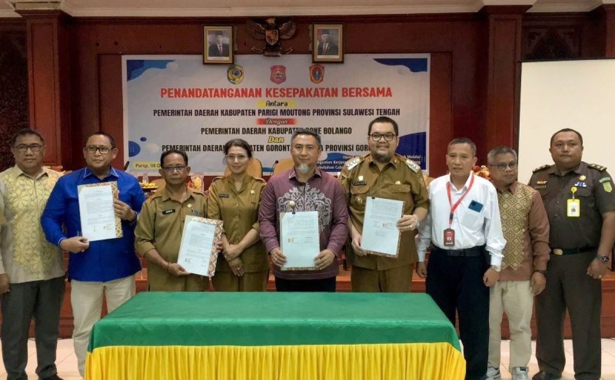Penandatangan kesepakatan pemda Parigi Moutong bersama Kabupaten Bone Bolango dan Gorontalo utara terkait kebutuhan komuditas pertanian. ASET: Istimewa