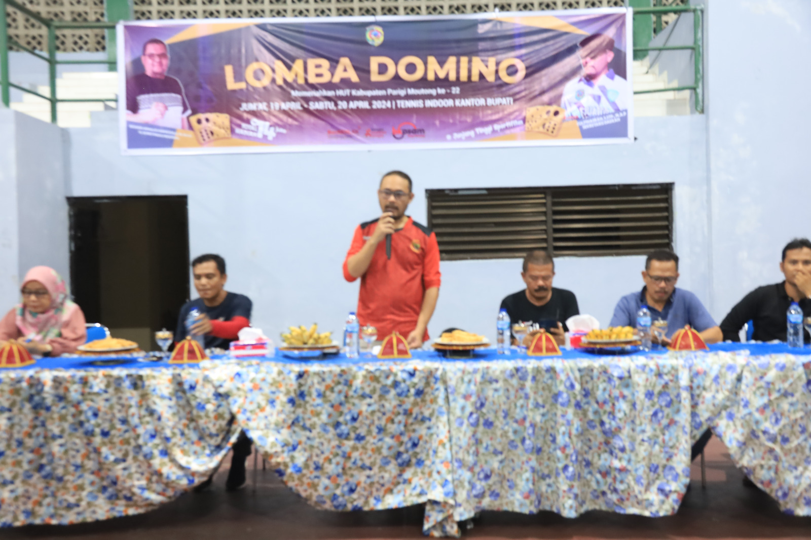 SEKRETARIS Daerah (Sekda) Kabupaten Parigi Moutong, Zulfinasran membuka kegiatan Lomba Gaple (Domino) dalam rangka memeriahkan HUT Kabupaten Parigi Moutong. Kegiatan itu berlangsung di Ruang Indoor Kantor Bupati, Jumat, 19 April 2024.
