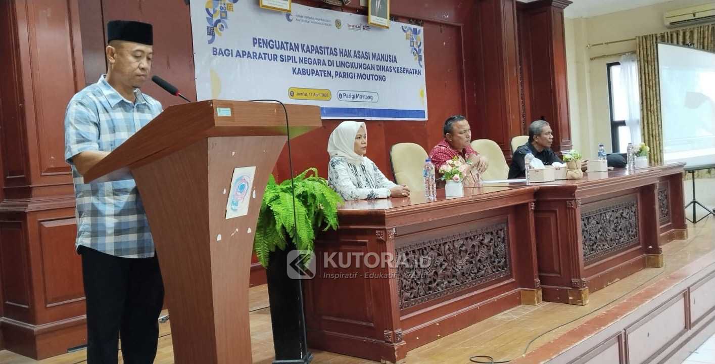 KUTORA.ID, PARIGI MOUTONG – Upaya menghadirkan layanan kesehatan yang adil dan inklusif terus diperkuat di Kabupaten Parigi Moutong. Melalui kolaborasi antara Dinas Kesehatan setempat dan Kantor Wilayah Kementerian Hak Asasi Manusia (HAM) Sulteng, digelar kegiatan peningkatan kapasitas bagi Aparatur Sipil Negara (ASN) di sektor kesehatan, Jumat 17 April 2026, bertempat di lantai dua Kantor Bupati.