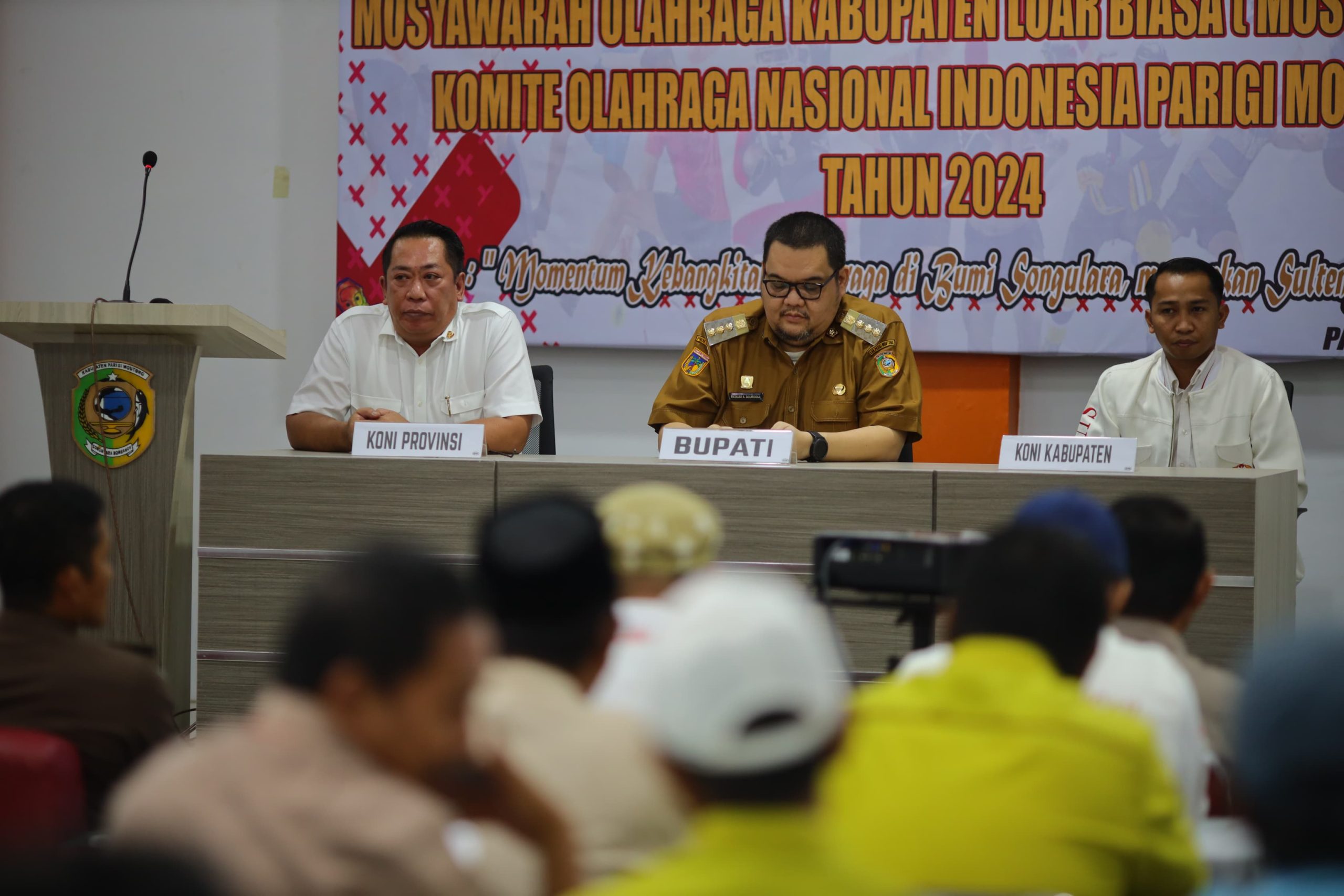 Pj Bupati Parigi Moutong, Richard Arnaldo saat menghadiri Musorkablub KONI Parimo. ASET: Arki Hipnoties.