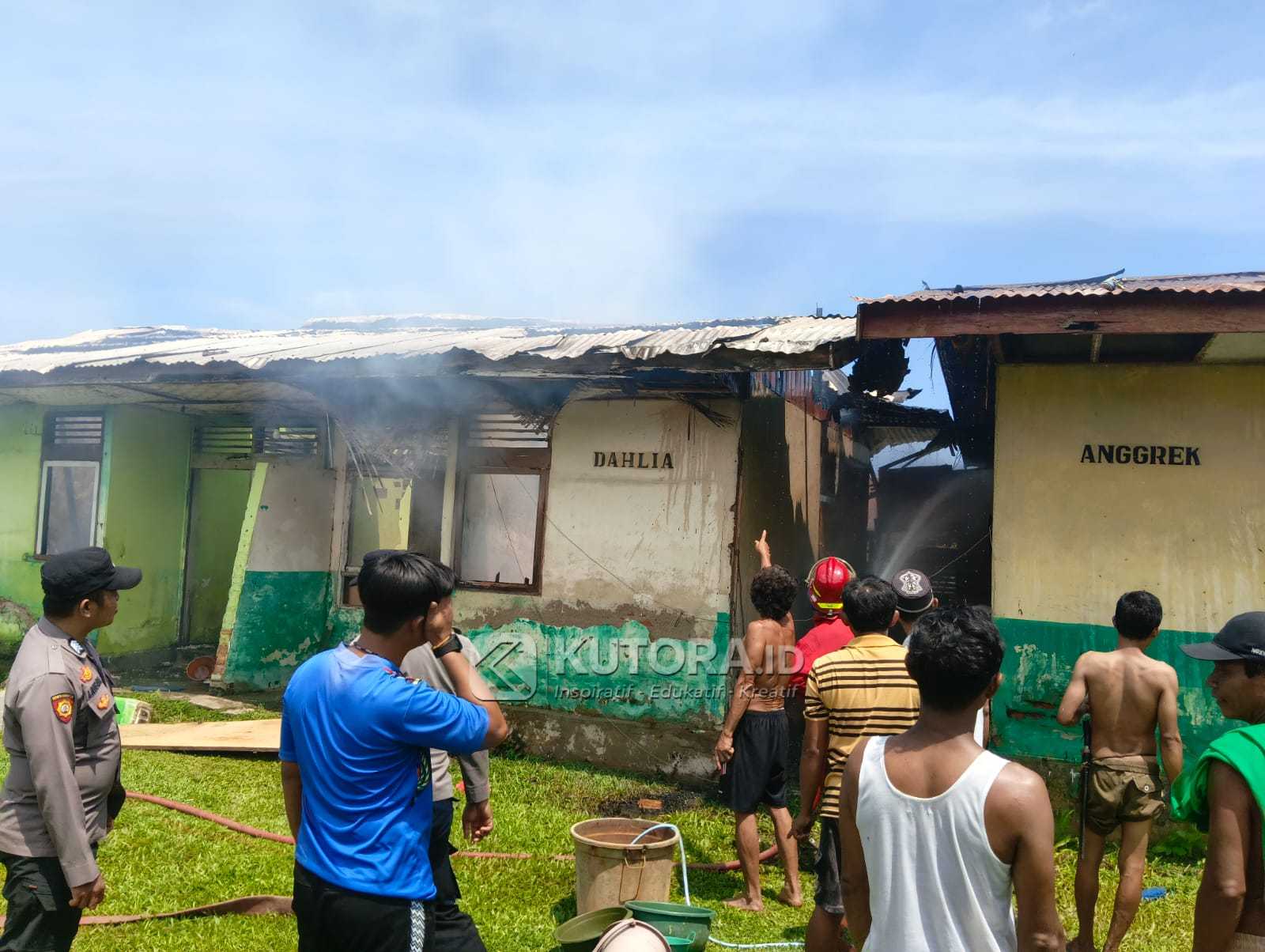 Api pertama kali muncul dari salah satu unit rumah dan dengan cepat merambat ke bangunan lain yang berada berdekatan. Warga sekitar bersama guru dan aparat setempat berupaya memadamkan api menggunakan peralatan seadanya sambil menunggu petugas pemadam kebakaran tiba di lokasi.