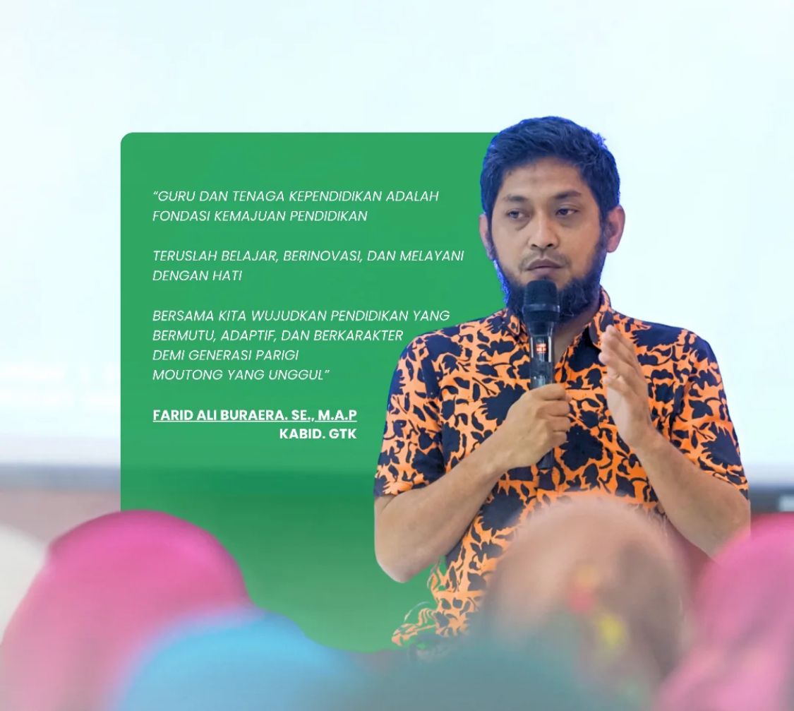 KUTORA.ID, Parigi Moutong – Kepala Bidang Guru dan Tenaga Kependidikan (GTK) Dinas Pendidikan dan Kebudayaan Kabupaten Parigi Moutong, Farid Ali Buraera, menegaskan bahwa guru memiliki peran krusial sebagai fondasi utama dalam kemajuan pendidikan, terlebih di tengah tantangan zaman yang terus berkembang.