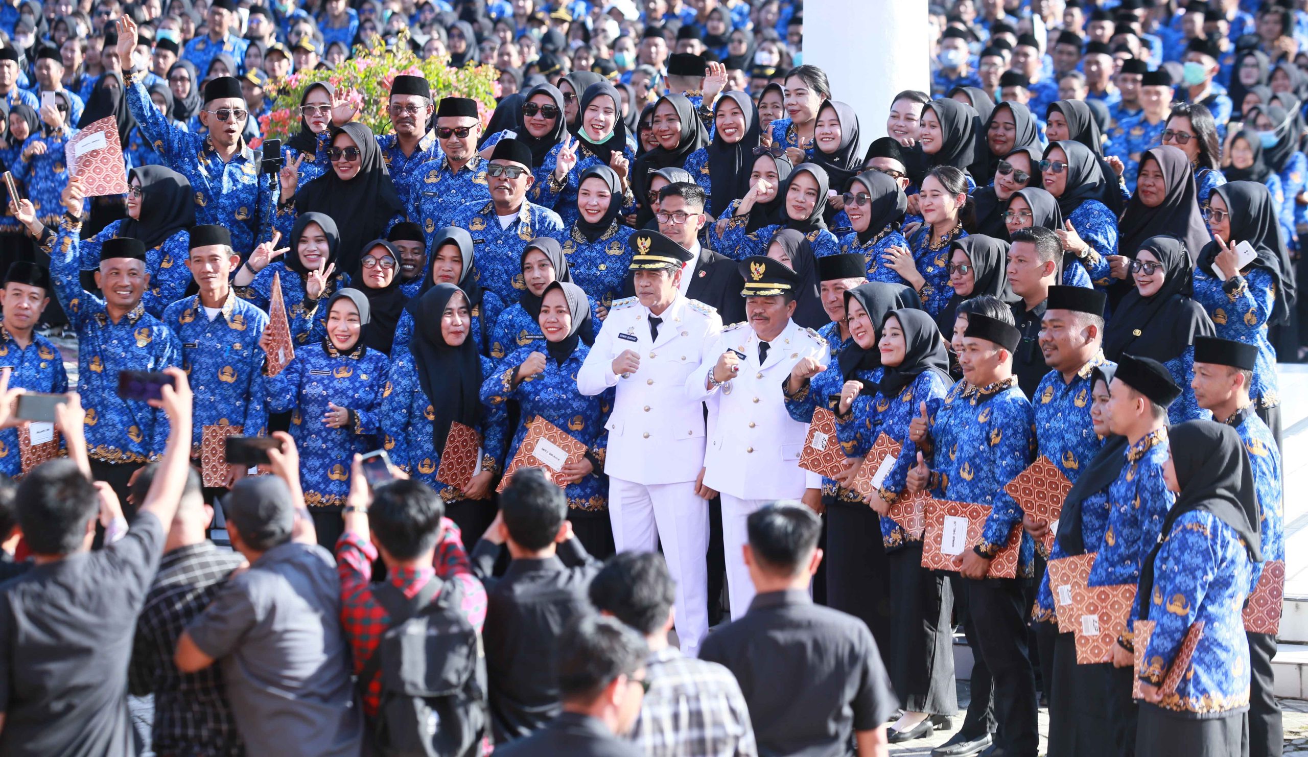 Ribuan peserta memadati lokasi acara dengan wajah-wajah penuh haru, bangga, dan harapan. Bagi mereka, SK yang diterima bukan sekadar dokumen administratif, melainkan pintu gerbang menuju pengabdian dan tanggung jawab baru sebagai bagian dari aparatur pemerintah.