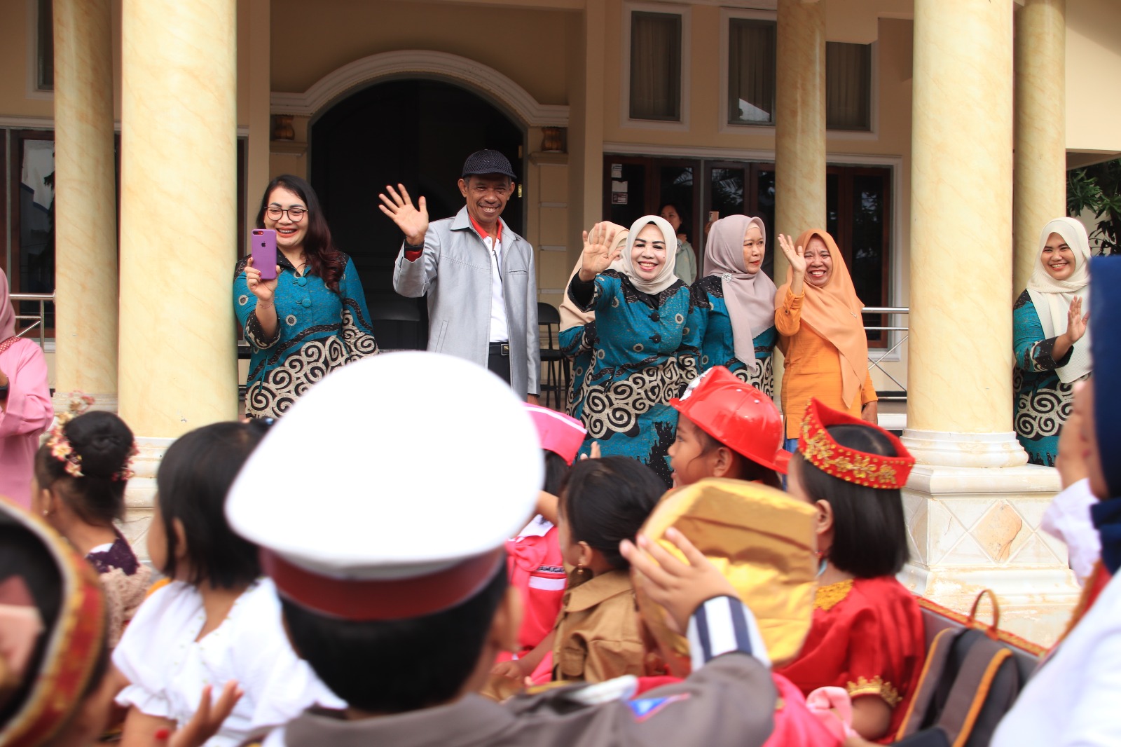 Siswa-siswi PAUD tersebut disambut Ketua TP-PKK Kabupaten Parigi Moutong yang juga Bunda PAUD Parigi Moutong Noorwachida Prihartini S Tombolotutu di halaman rumah jabatan (rujab) bupati Parigi Moutong.