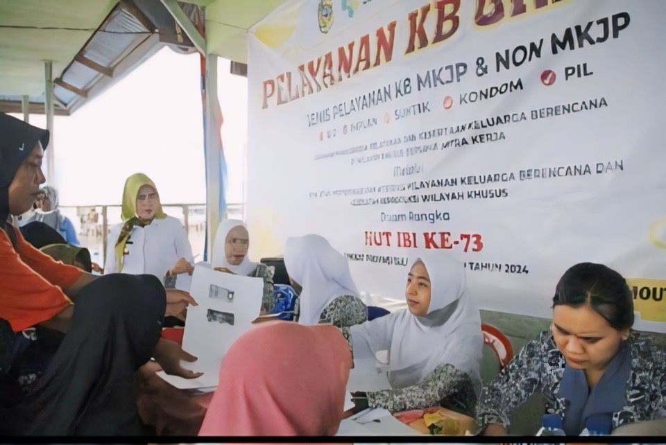 BADAN Kependudukan dan Keluarga Berencana Nasional (BKKBN) Provinsi Sulawesi Tengah (Sulteng), berikan pelayanan KB gratis terhadap 133 Perempuan di Kecamatan Bolano. Dalam rangka peringatan Hari Ulang Tahun (HUT) Ke- 73 Ikatan Bidan Indonesia (IBI). Kegiatan yang di gelar di Desa Bahari, Kecamatan Bolano itu, pada Rabu, 15 Mei 2024.