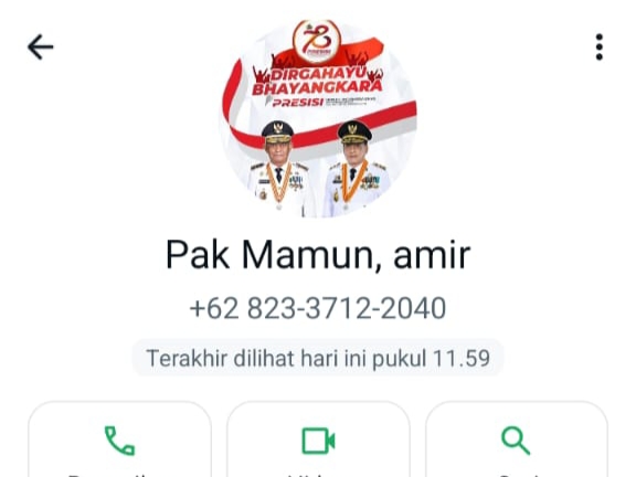 KUTORA.IDTelah beredar akun WhatsApp palsu mengatasnamakan Wakil Gubernur Sulawesi Tengah, Ma’mun Amir, di media sosial. Diduga akun ini menyebarkan pesan-pesan tidak benar yang meresahkan.