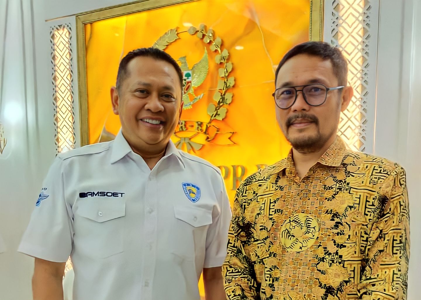 SEKRETARIS Daerah (Sekda) Kabupaten Parigi Moutong, Zulfinasran Tiangso bertemu Ketua Majelis Permusyawaratan Rakyat Republik Indonesia (MPR RI), Bambang Soesatyo (Bamsoet), Kamis 30 Maret 2023.